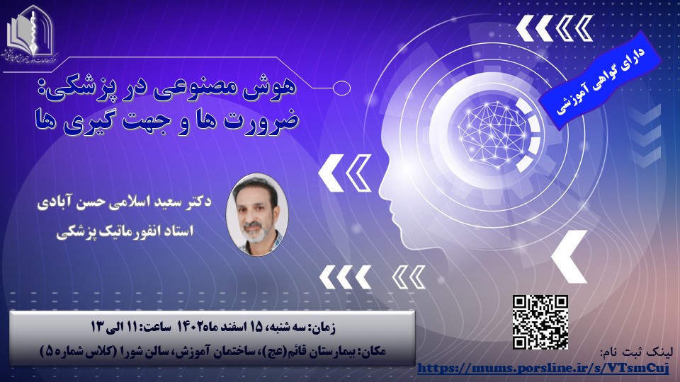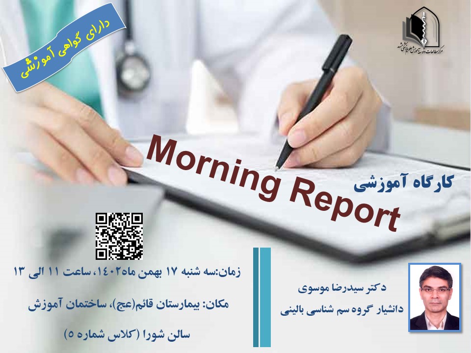 مکان: بیمارستان قائم(عج)، ساختمان آموزش، سالن شورا (کلاس شماره 5)