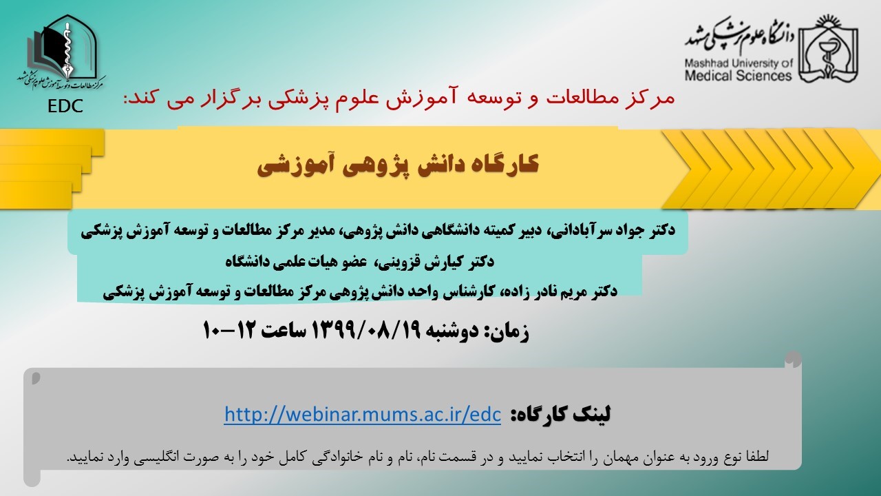 کارگاهها مسئول سایت کارگاه ها 18 آبان 1399 بازدید: 355 امتیاز: ( 0 Rating ) کارگاه وبیناری دانش پژوهی آموزشی مورخ 19 آبان ماه 1399 امتیاز کاربران لطفا رای دهید رای 1 رای 2 رای 3 رای 4 رای 5 http://webinar.mums.ac.ir/edc قبلی بعدی